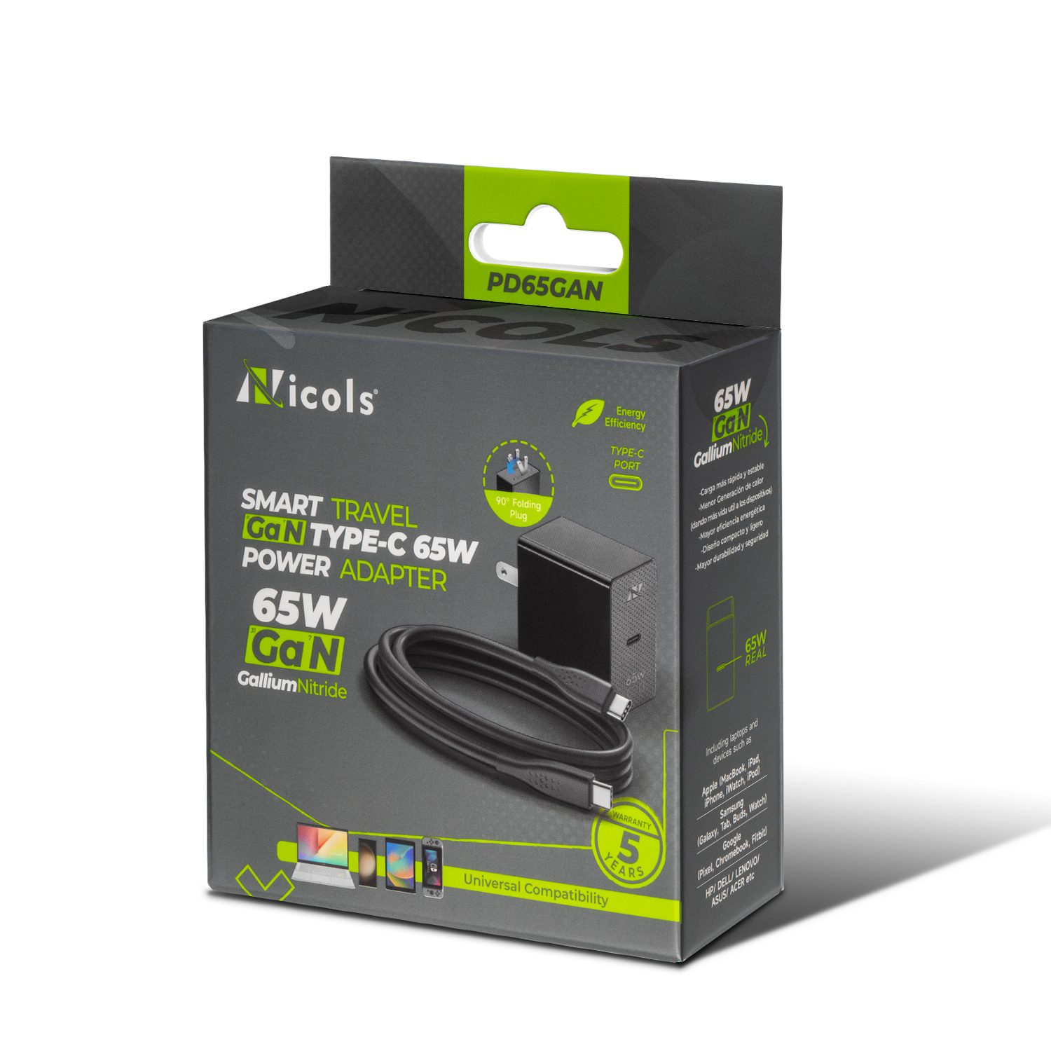 El Cargador Tipo-C GaN 65W Marca Nicols – NC-65W es la evolución definitiva en eficiencia, velocidad y seguridad para tus dispositivos móviles y equipos de alto rendimiento. Diseñado para usuarios que exigen confiabilidad absoluta, este cargador utiliza tecnología GaN (Nitruro de Galio), una innovación que permite un diseño más compacto, menor calentamiento y una entrega de potencia mucho más eficiente en comparación con los cargadores tradicionales. ⚡🔋