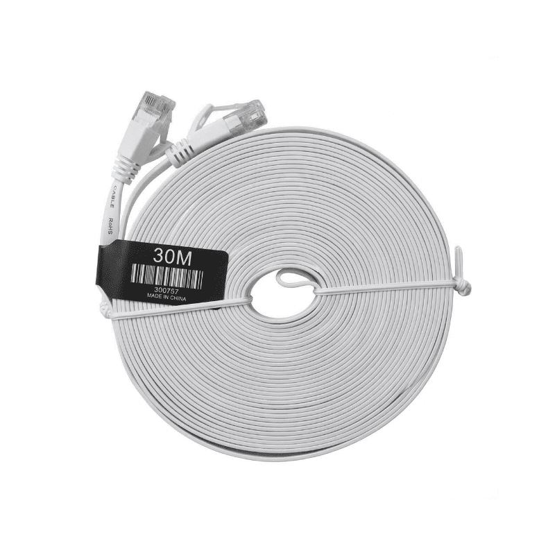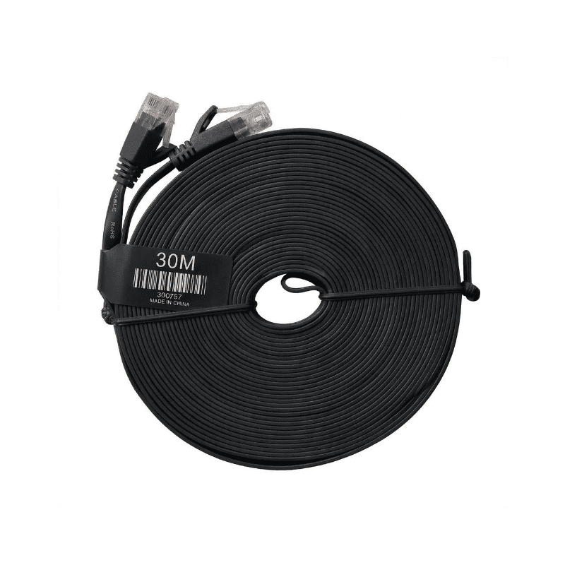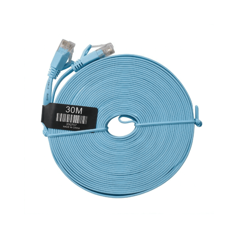 Nuevo Cable de Red CAT 6 STP Plano 100% Cobre 30 Metros Punta PVC – Azul, Blanco y Negro – Ref. 300757