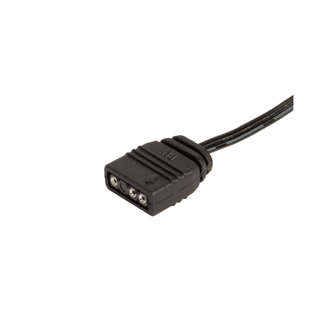 Nota técnica de vital importancia: El Ventilador negro ARGB de 3 pines opera exclusivamente a 5V. Conectarlo a un puerto de 12V (RGB tradicional) resultará en el daño permanente e inmediato de los LEDs. El conector de 3 pines incluye una guía física para asegurar que la instalación sea correcta. Siempre verifique que su placa base cuente con el encabezado ARGB correspondiente antes de la conexión.
